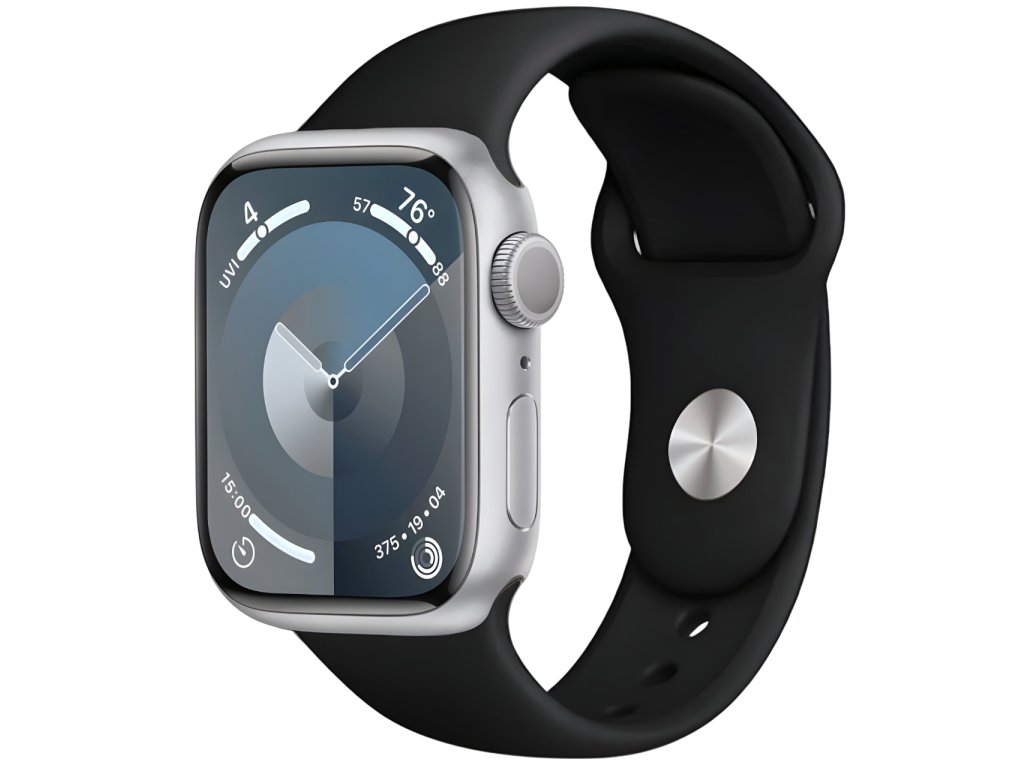 Apple Watch Series 9 GPS 45 mm Silver Aluminum – Black Sport Band