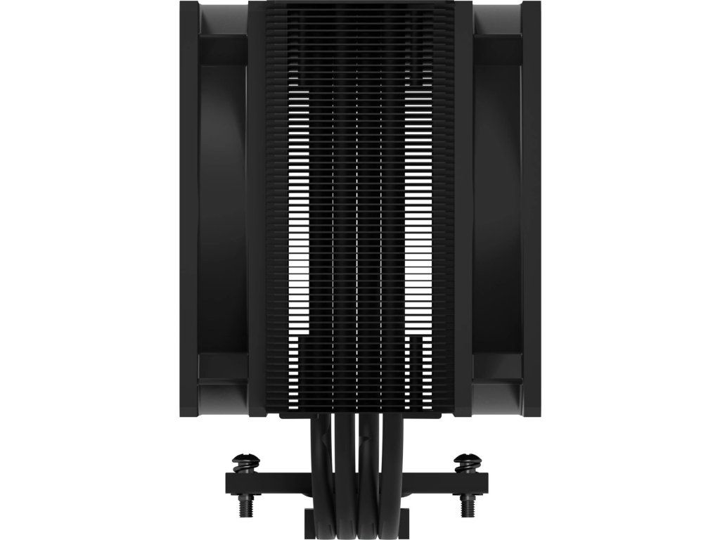 Chladič využíva vežovú konštrukciu so štyrmi medenými heatpipe, ktoré efektívne odvádzajú teplo do hliníkového pasívu.