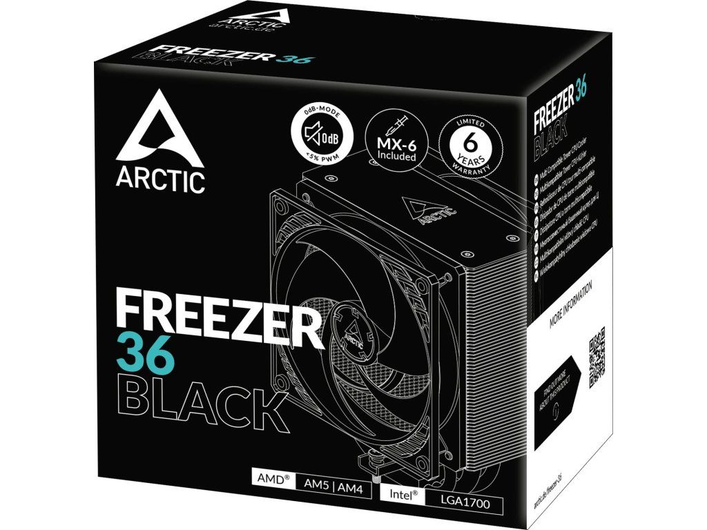 ARCTIC Freezer 36 Black je moderný vzduchový chladič určený pre efektívne chladenie procesorov v herných aj pracovných zostavách.