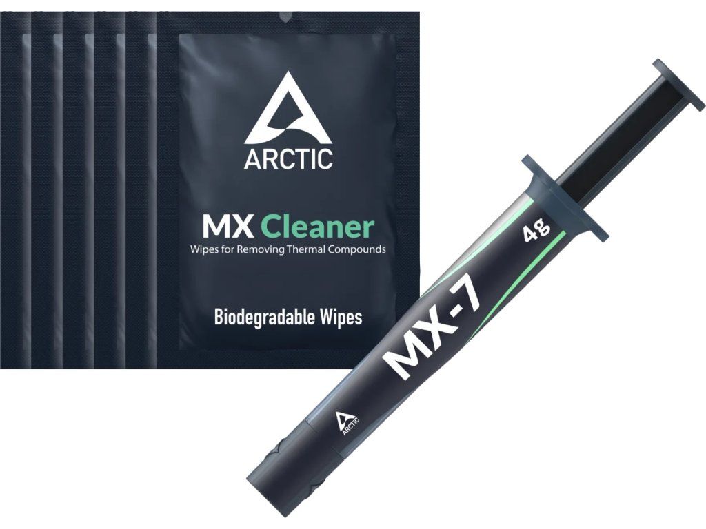 ARCTIC MX-7 Thermal Compound (4g) + 6x MX Cleaner je moderná teplovodivá pasta navrhnutá pre maximálny chladiaci výkon a dlhodobú stabilitu.