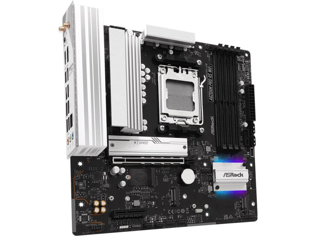 ASRock A620M Pro RS WiFi je základná doska formátu micro-ATX postavená na čipsete AMD A620, navrhnutá pre procesory AMD Ryzen série 7000 s päticou AM5. Predstavuje vyvážené riešenie pre moderné zostavy so zameraním na stabilitu a základnú výbavu platformy AM5.