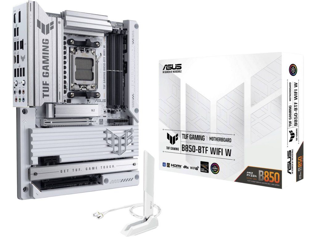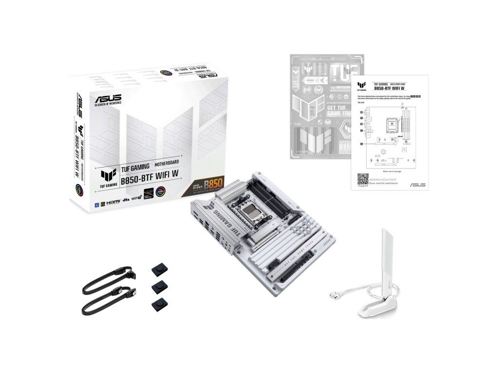 ASUS TUF GAMING B850-BTF WIFI W je moderná základná doska formátu ATX zo série TUF GAMING, postavená na čipsete AMD B850 a určená pre procesory AMD Ryzen s päticou AM5. Poskytuje stabilný výkon a vysokú spoľahlivosť.