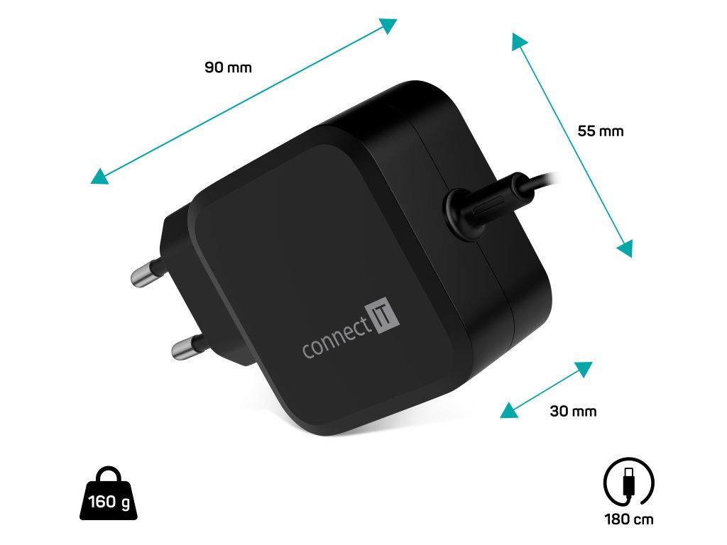 CONNECT IT C-Power Mini je univerzálny napájací adaptér určený pre zariadenia s USB-C napájaním.