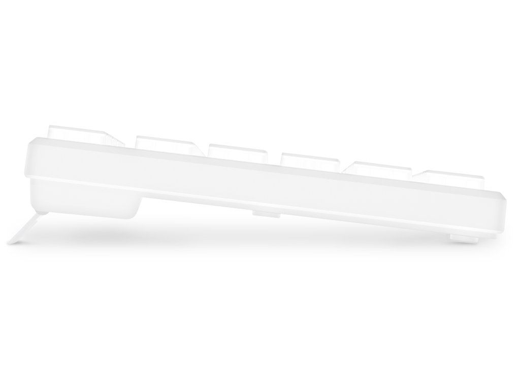 Biele podsvietenie je možné zapnúť, upraviť alebo úplne vypnúť podľa potreby. Klávesnica je vybavená USB pripojením a káblom s dĺžkou cca 1,5 m.