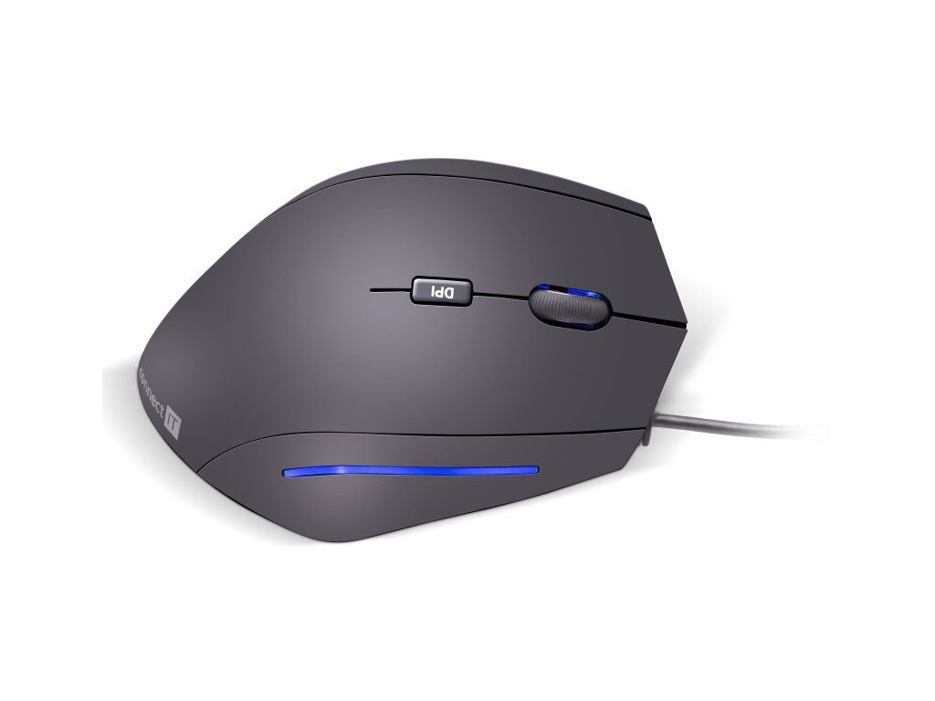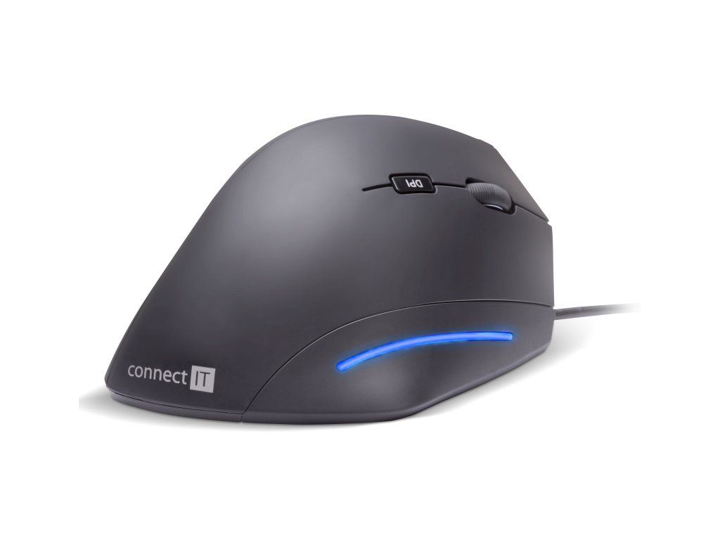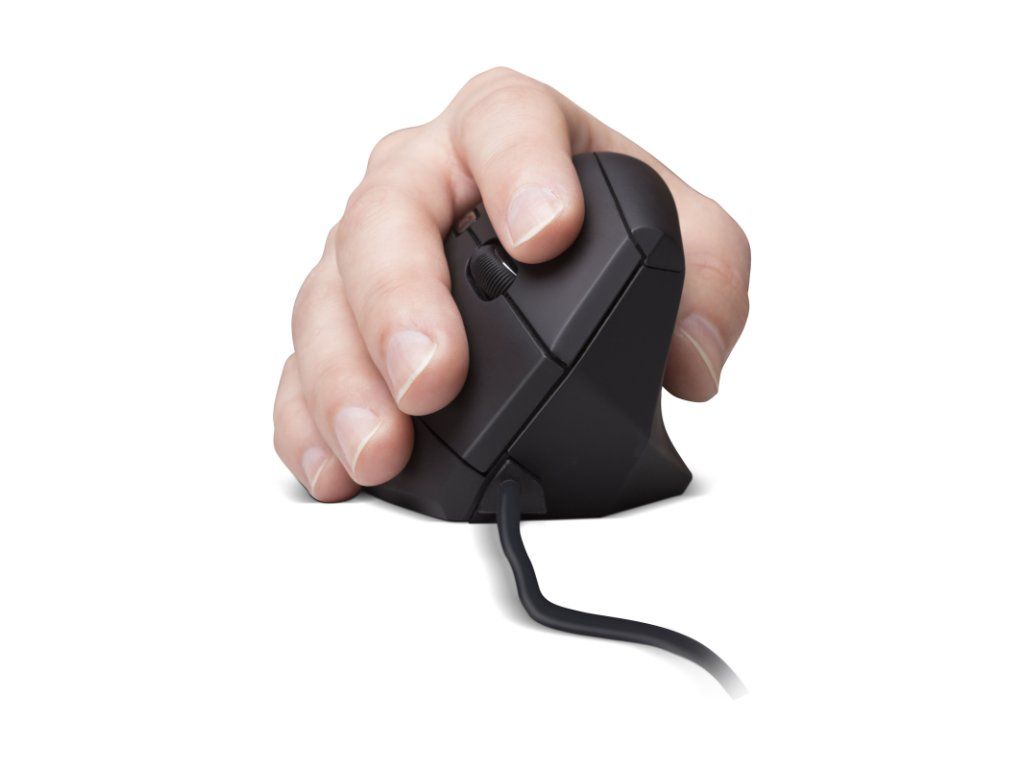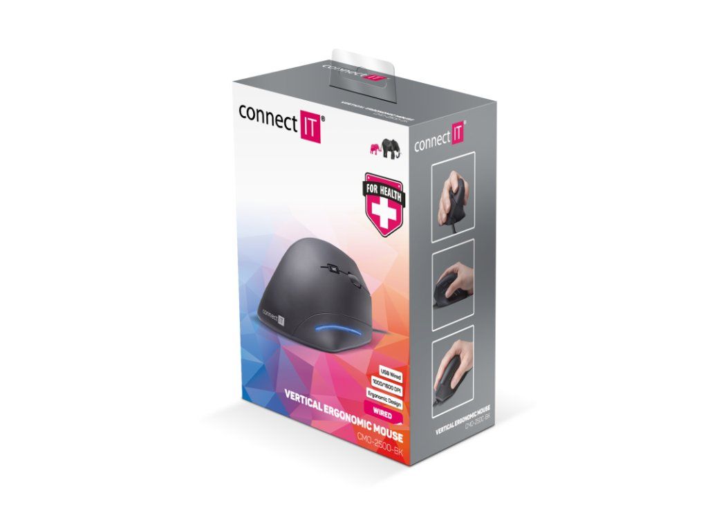 CONNECT IT FOR HEALTH Verti Wire (CMO-2500-BK) je ergonomická vertikálna myš navrhnutá pre zdravšiu prácu na počítači. Vďaka špeciálnemu vertikálnemu tvaru drží ruku v prirodzenej polohe, čím znižuje napätie v zápästí a pomáha predchádzať syndrómu karpálneho tunela.