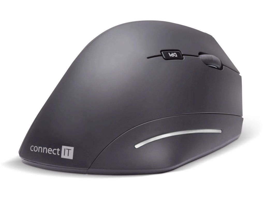 CONNECT IT FOR HEALTH Verti Wireless (CMO-2510-BK) je ergonomická vertikálna myš navrhnutá pre zdravšiu prácu na počítači. Vďaka vertikálnemu tvaru udržiava ruku v prirodzenej polohe, čím znižuje napätie v zápästí a pomáha predchádzať syndrómu karpálneho tunela.