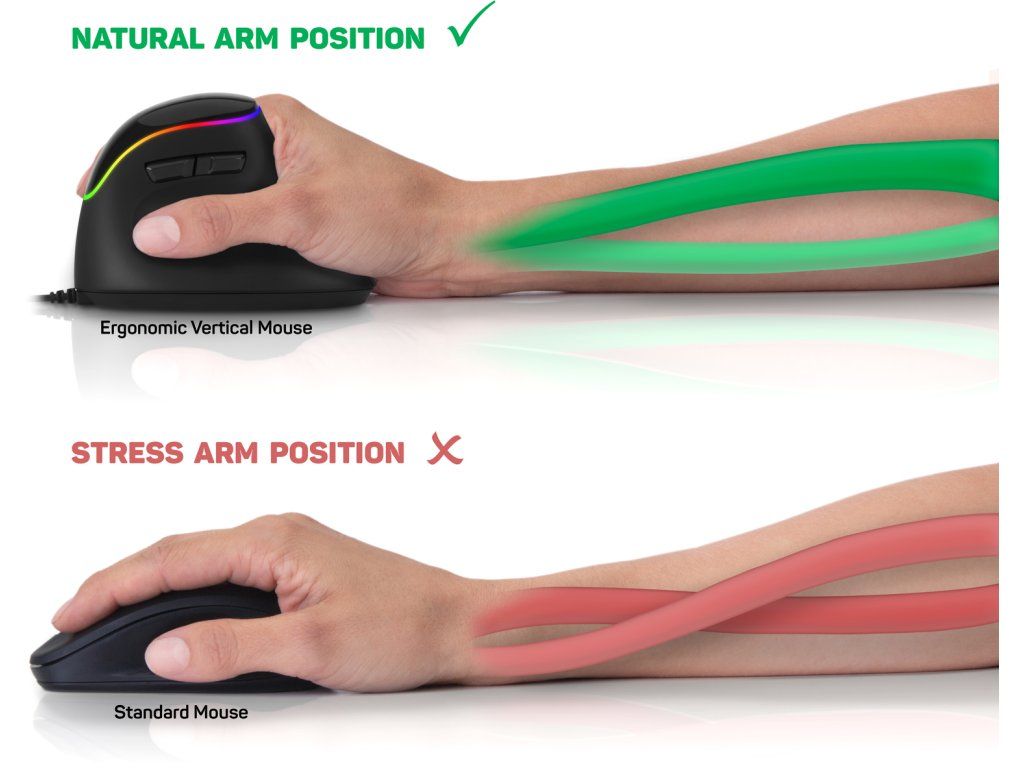 Vertikálna konštrukcia pomáha predchádzať syndrómu karpálneho tunela a zvyšuje komfort pri práci aj hraní hier.
