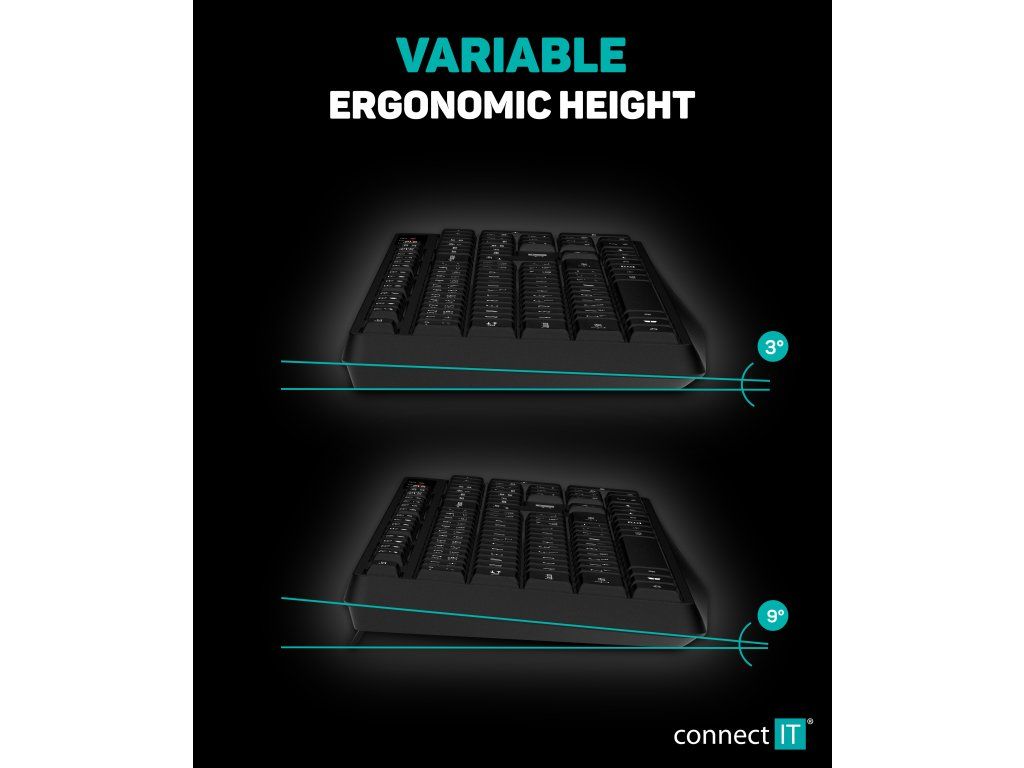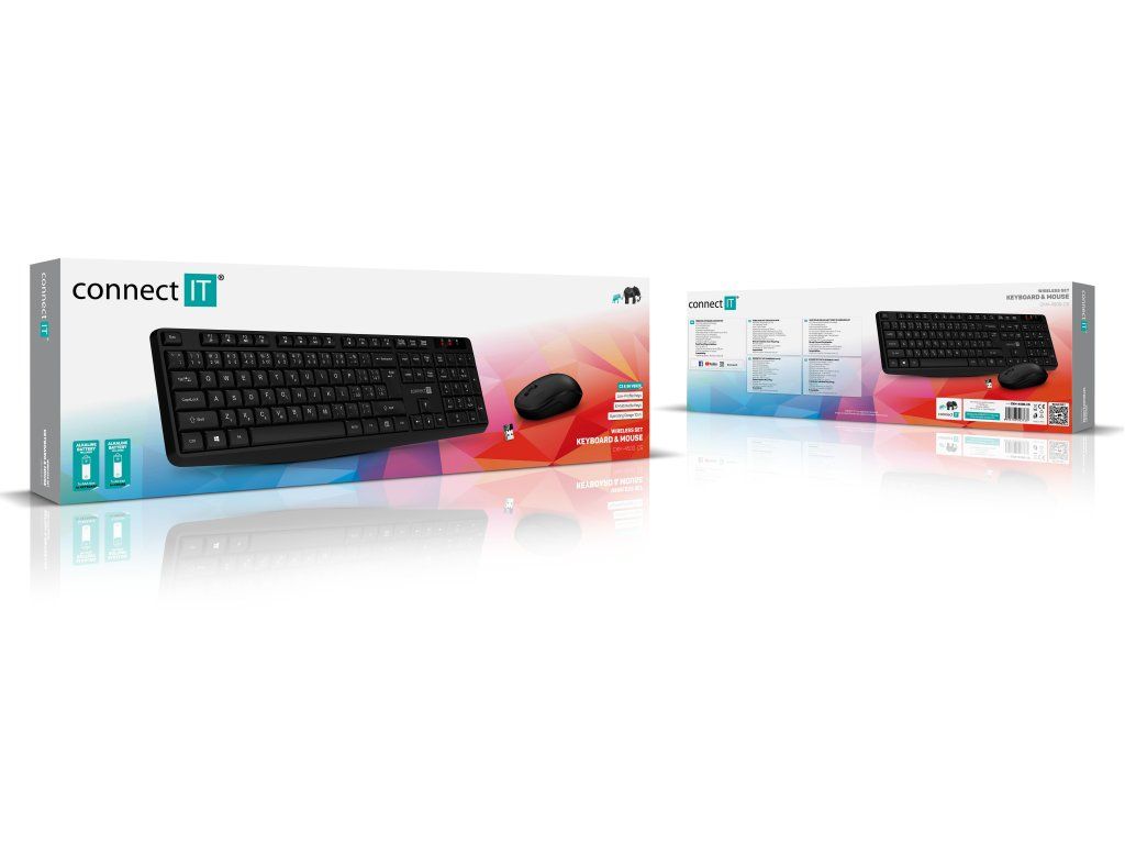 CONNECT IT CKM-7800-CS Black CZ/SK je bezdrôtový set klávesnice a myši s 2.4 GHz pripojením, nízkoprofilovými klávesmi, 13...