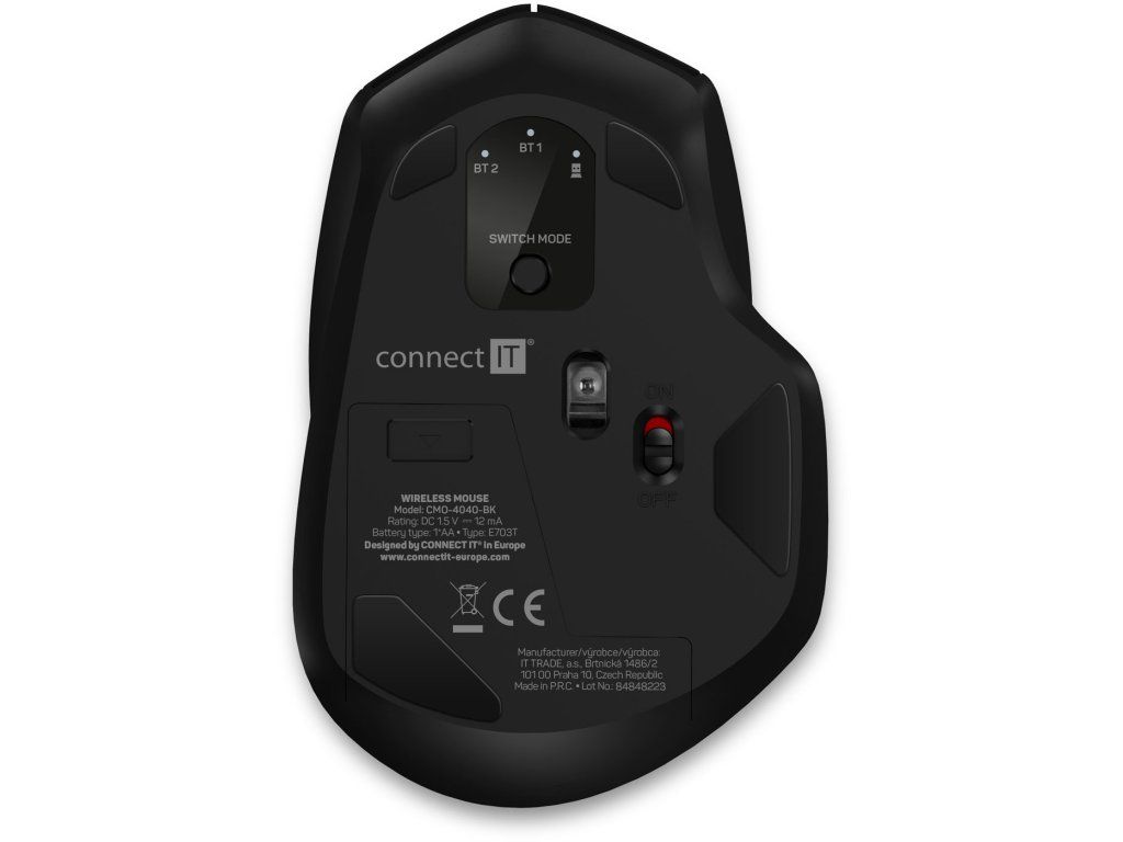 CONNECT IT Triple SmartSwitch Black (CMO-4040-BK) je moderná bezdrôtová myš určená pre náročnejšiu prácu doma aj v kancelárii. Vďaka technológii Triple SmartSwitch umožňuje pripojenie až k trom zariadeniam súčasne a ich okamžité prepínanie jedným tlačidlom.