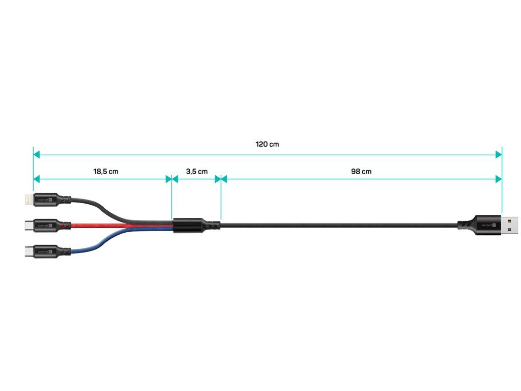 CONNECT IT Wirez 3v1 je ideálne riešenie pre každého, kto chce mať jeden univerzálny kábel pre viac zariadení.