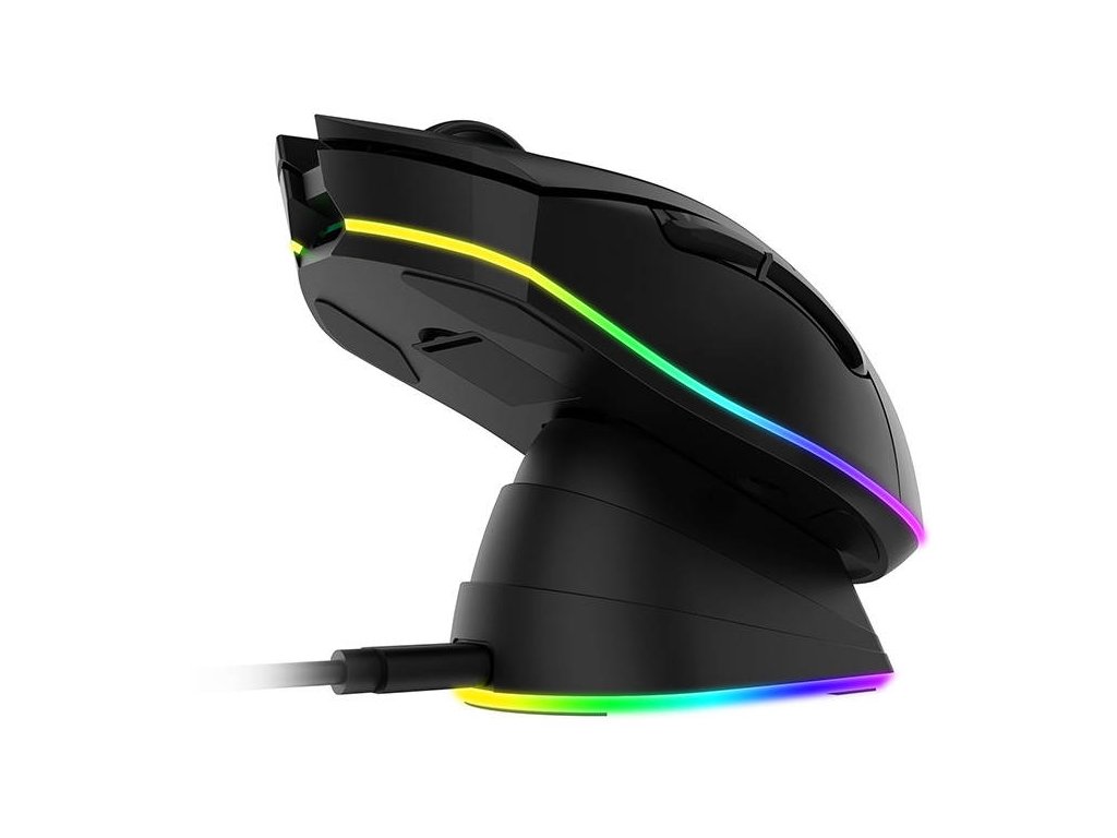 Na pripojenie myši k počítaču môžete použiť priložený kábel USB-C alebo zvoliť bezdrôtovú možnosť. Pásmo 2,4 G ponúka bleskovú odozvu a nie je náchylné na rušenie. Zariadenie čerpá energiu z výkonnej lítiovej batérie s kapacitou 930 mAh, ktorá zaručuje prevádzkovú dobu približne 10 dní (pri 4 hodinách používania denne). Energiu možno dopĺňať prostredníctvom dokovacej stanice s magnetickým držiakom.