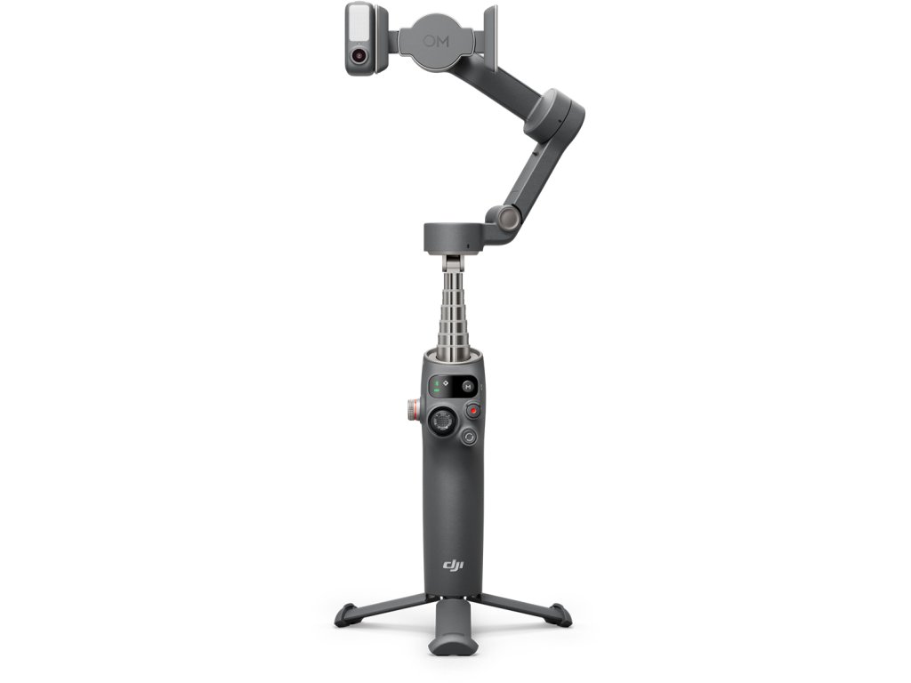 Tento model je vybavený magnetickým držiakom, ktorý umožňuje rýchle uchytenie telefónu bez zbytočného nastavovania. Multifunkčný modul prináša integrované osvetlenie a možnosť pripojenia až dvoch DJI Mic Mini mikrofónov bez potreby samostatného príjimača. Vestavěný statív a predĺžená tyč uľahčujú natáčanie z rôznych uhlov a zabezpečujú stabilné zábery bez ďalšieho príslušenstva.