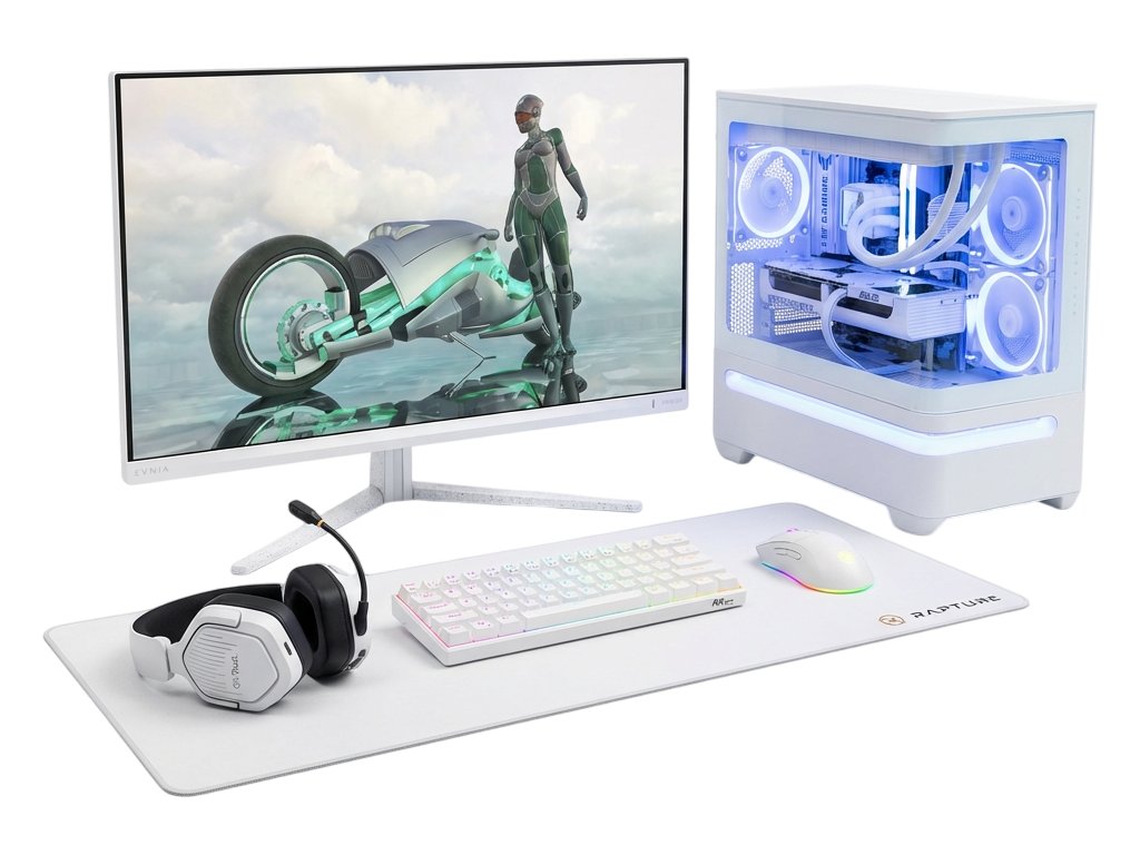 Kompletný herný SET – Powered by ASUS bez kompromisov. Okrem samotného počítača obsahuje tento set aj monitor a herné príslušenstvo v jednotnom bielom dizajne. Nemusíte riešiť žiadne ďalšie dokupovanie – všetko potrebné máte pripravené v jednom balení.
