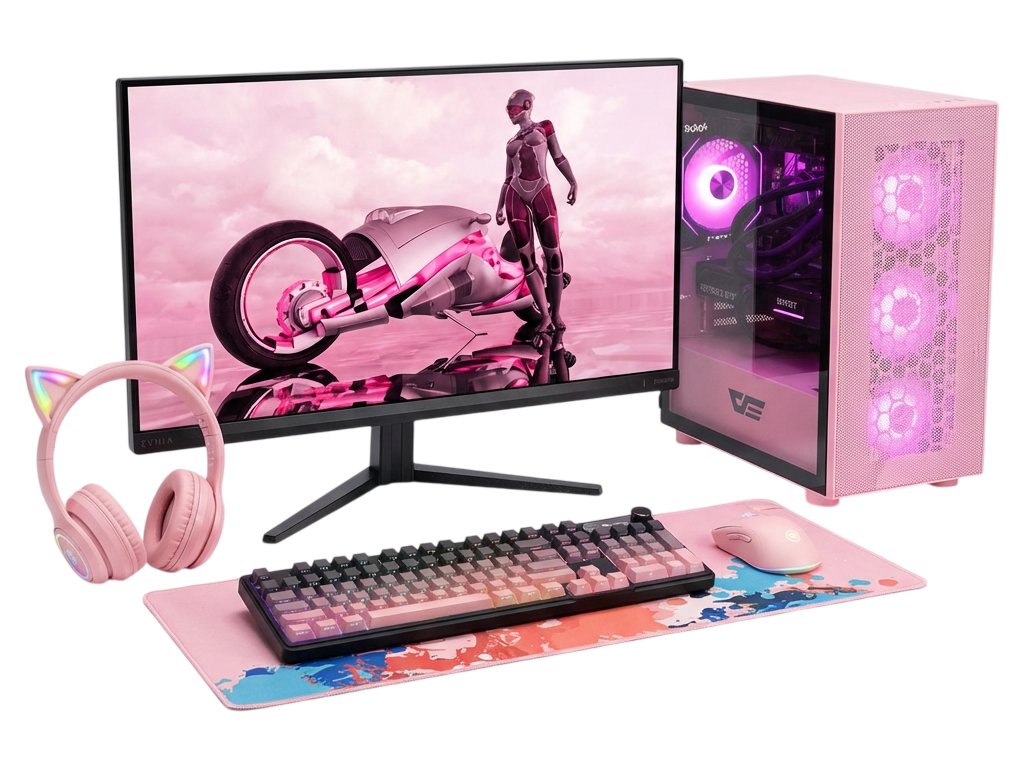 Kompletný herný SET – výkon, štýl a originalita v jednom. Okrem samotného počítača obsahuje tento set aj monitor a herné príslušenstvo v jednotnom ružovom dizajne. Nemusíte riešiť žiadne ďalšie dokupovanie – všetko potrebné máte v jednom balení.