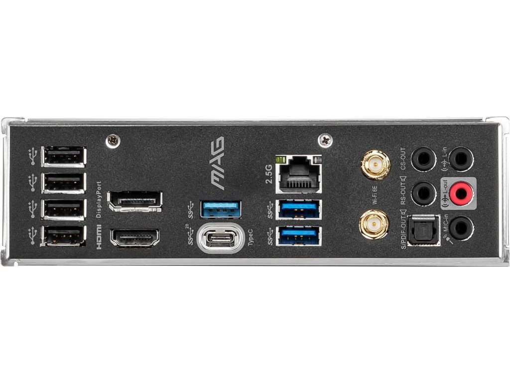 Sieťové pripojenie zabezpečuje 2.5Gb Ethernet a integrované Wi-Fi 6 s Bluetooth. Zadný panel ponúka moderné USB porty vrátane USB 3.2 Gen 2 a obrazové výstupy HDMI a DisplayPort.