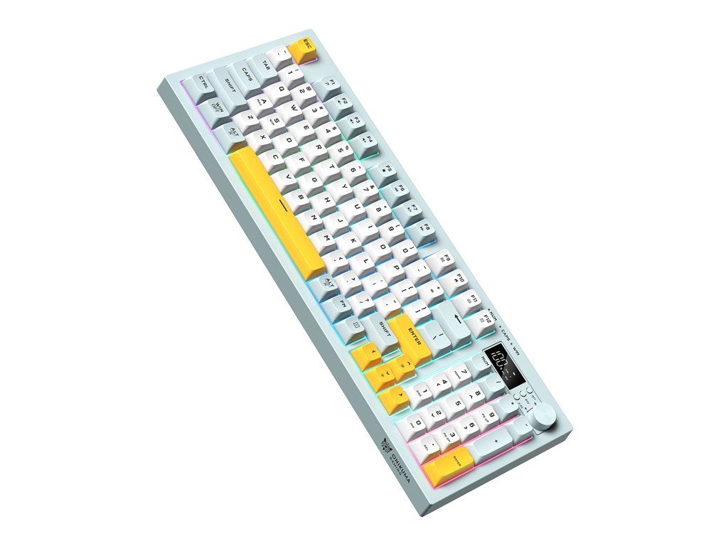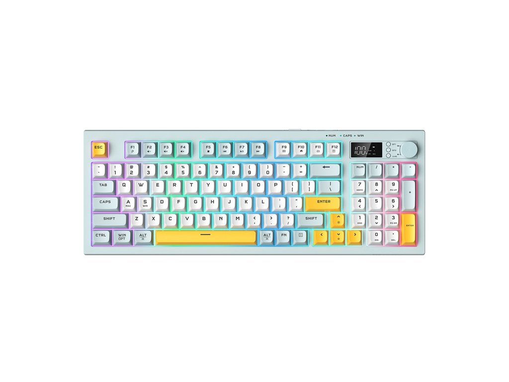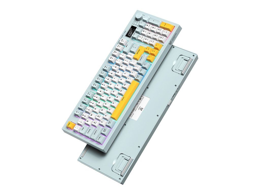 Klávesnica podporuje Bluetooth 5.0, 2,4GHz bezdrôtové pripojenie aj káblový režim cez USB-C. Praktickou súčasťou je OLED displej zobrazujúci stav pripojenia a batérie, multifunkčný otočný ovládač, RGB podsvietenie a integrovaná batéria s kapacitou 2000 mAh na dlhú výdrž na jedno nabitie.