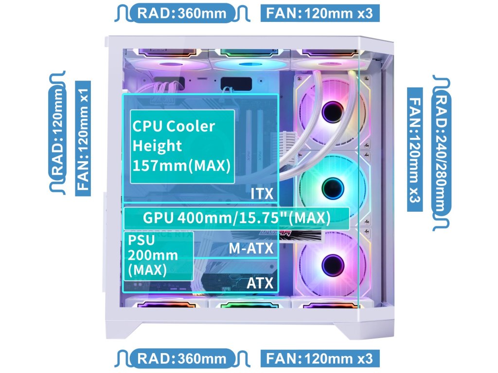 - Ventilátory v balení: 7× ARGB (6× reverse intake + 1× exhaust)