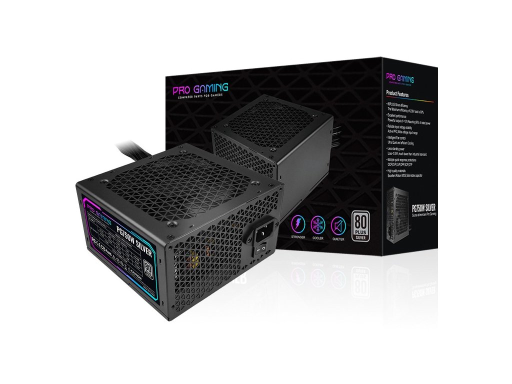ProGaming GM Series 750W 80 PLUS Silver je výkonný a spoľahlivý napájací zdroj určený pre moderné herné zostavy, ktoré vyžadujú stabilné napájanie, dobrú účinnosť a dlhú životnosť. Certifikácia 80 PLUS Silver zaručuje slušnú energetickú účinnosť a nižšie straty pri bežnom aj vyššom zaťažení.