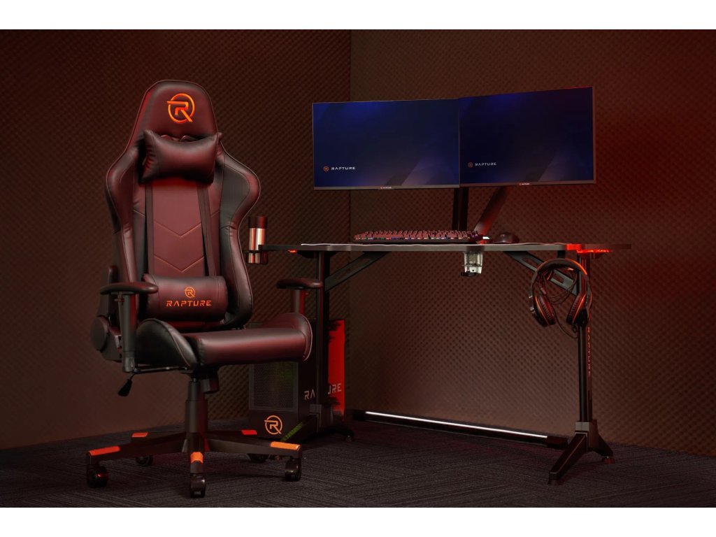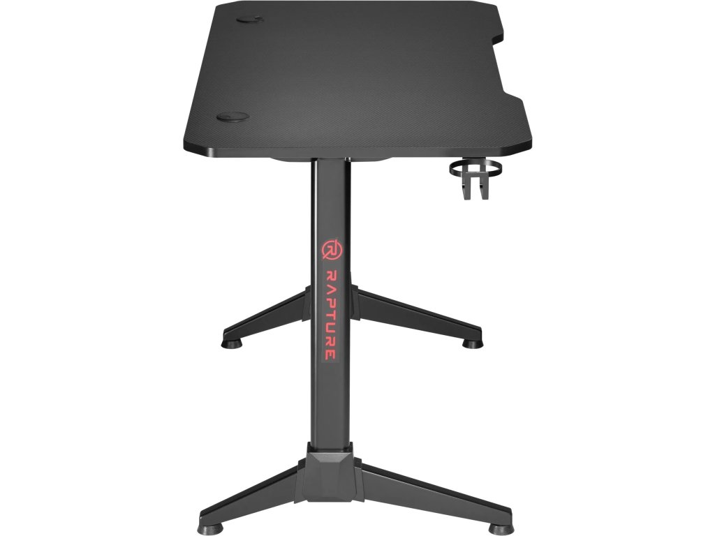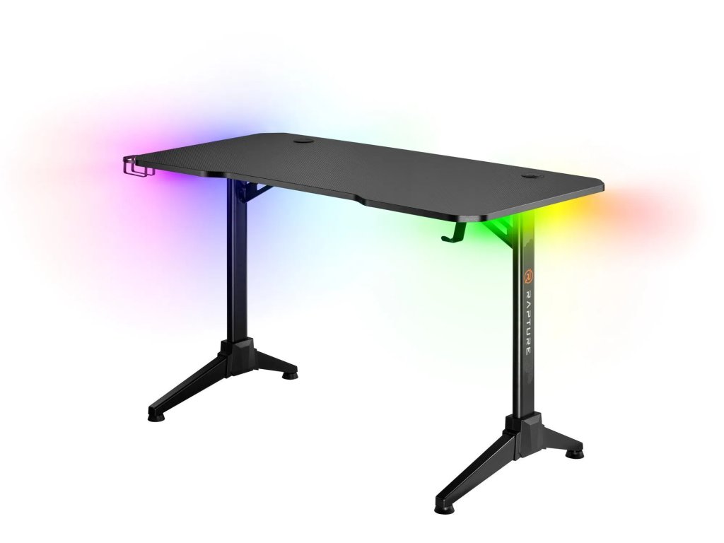 Rapture TEMPLE 200 – čierny herný stôl s RGB podsvietením je ideálnou voľbou pre hráčov, ktorí hľadajú štýlové a funkčné pracovné prostredie. Ponúka rozmery 120 × 60 cm, pevnú kovovú konštrukciu, výbornú nosnosť a USB napájanie pre spodný LED svetelný efekt. Nechýba ani praktický držiak na nápoj a háčik na slúchadlá.