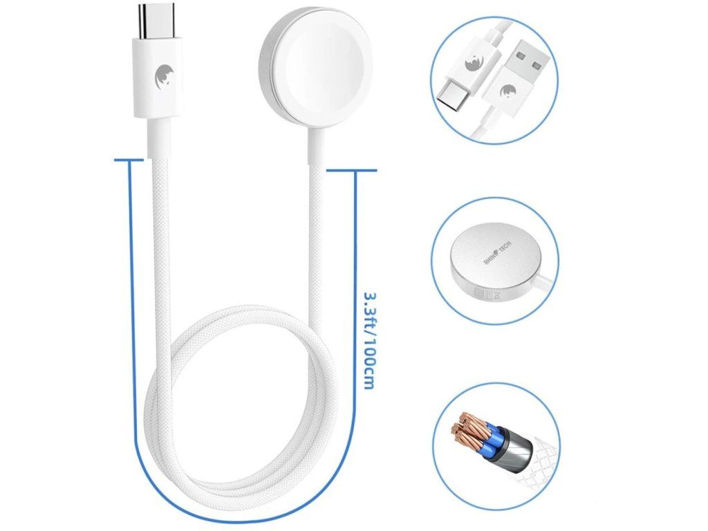 RhinoTech USB-C Charge Cable for Apple Watch (1m) - White