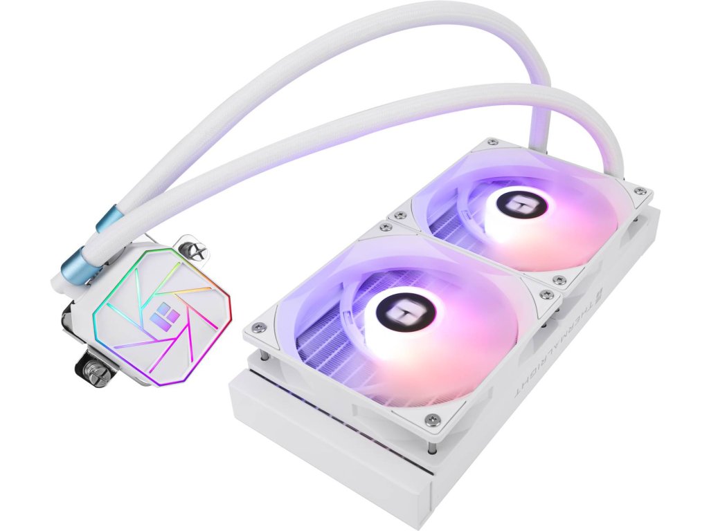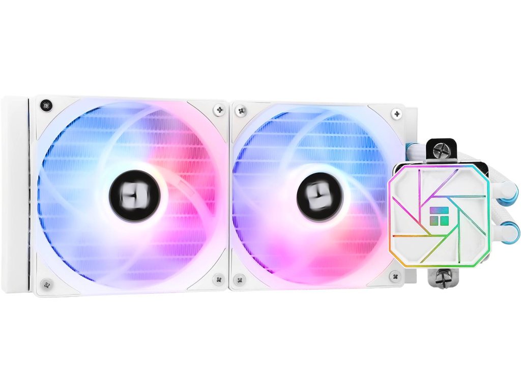 Thermalright Aqua Elite 240 White V3 je moderní vodní chladič typu all-in-one, který kombinuje atraktivní design s vysokým chladicím výkonem. Bílá varianta se dvěma 120mm PWM ventilátory a ARGB podsvícením se hodí do estetických sestav, kde je požadován nejen výkon, ale i styl.