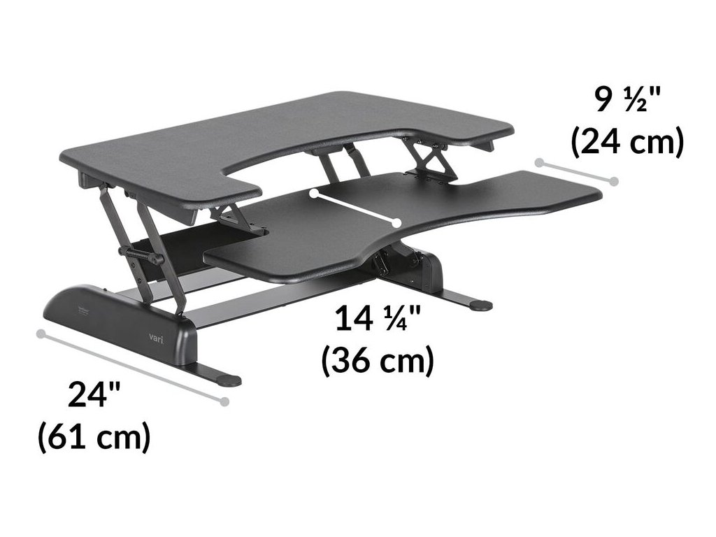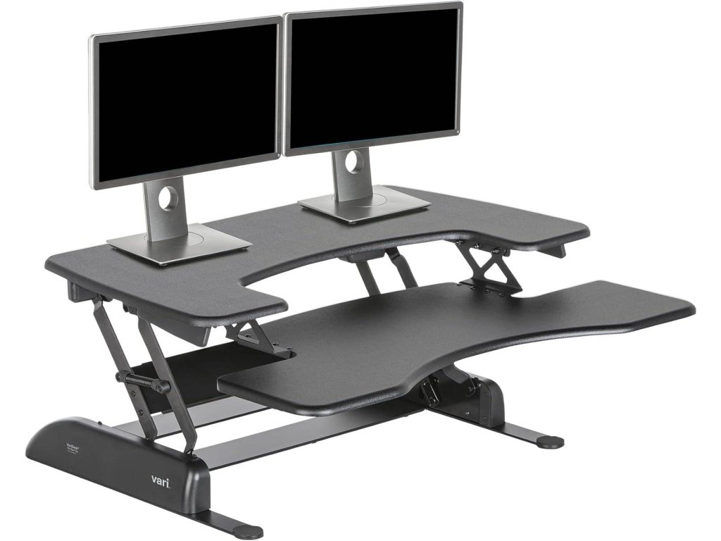 VariDesk Pro Plus 36 je stabilní a kvalitní výškově nastavitelný nástavec na stůl, který umožňuje pohodlný přechod mezi sezením a stáním během práce. Díky dvoupákovému zvedacímu mechanismu se celý systém zvedá plynule, bezpečně a bez námahy, a to i při vyšším zatížení.