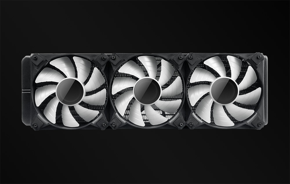 O účinné chlazení procesoru se starají tři 120mm ventilátory, z nichž každý je vybaven 9 lopatkami a kvalitním ložiskem Rifle. Vyznačují se také působivým výkonem a nízkou hladinou hluku - pouze asi 32 dBA. To bylo umožněno použitím speciálních antivibračních podložek. Zapomeňte na nepříjemný hluk! Ventilátory také podporují funkci PWM, díky níž jsou schopny automaticky upravovat své otáčky podle teploty procesoru.
